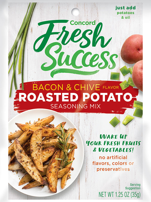 Ce mélange d'assaisonnements de Concord Foods rehausse instantanément le goût de vos pommes de terre rôties avec des saveurs de bacon fumé et de ciboulette fraîche. Pratique et facile à utiliser, il suffit de le mélanger à vos pommes de terre coupées avant cuisson pour un résultat croustillant, doré et plein de goût.