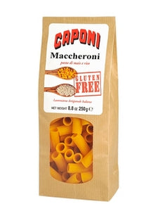 - Les pâtes alimentaires sans gluten de CAPONI sont fabriquées exclusivement à partir de farine de maïs (70%) et de farine de riz (30%). Elles sont entièrement naturelles et ne contiennent pas de mono et diglycérides d'acides gras ni autre type d'émulsifiant. Les pâtes sont tréfilées au bronze afin d'avoir en surface cette rugosité qui retient à merveille les sauces et assaisonnements.