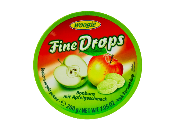 Fine Drops – Apple Flavored Candies – 200g Metal Tin – Woogie