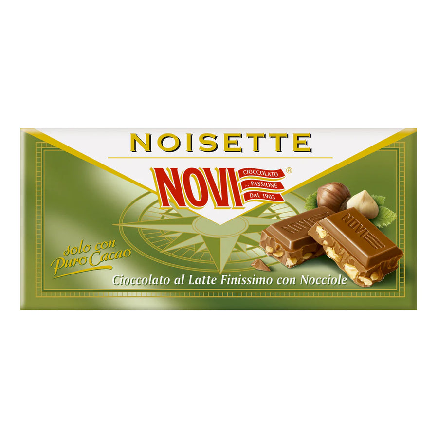 The extra-fine Novi milk chocolate combines deliciously with the fine grain of hazelnuts from our hills, present in the recipe for 16%. Thus was born, in the factory of Novi Ligure in Piedmont, the exquisite Milk Hazelnut bar.