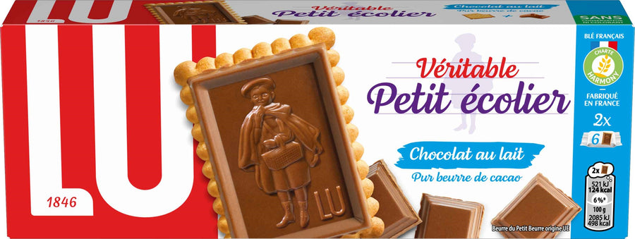 A real Little Schoolboy from LU, a biscuit that combines simplicity and deliciousness by combining a crunchy little LU butter with a delicious bar of milk chocolate, guaranteed to be pure cocoa butter.